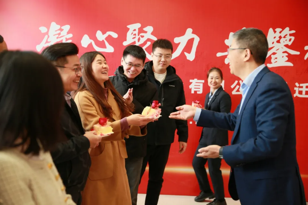 乔迁揭幕仪式中的切蛋糕环节将整个仪式推向高潮。蛋糕,预示着庆祝、圆满、延续和成长,光力科技EMT管理团队共同切下蛋糕,并将大蛋糕分切成小蛋糕,送给在场的员工们,与大家共享沉甸甸的果实。正所谓各美其美,美人之美,美美与共,天下大同,光力科技正在努力以“各美其美”的双赢、多赢、共赢的理念来驱动“美美与共”的光力大同。公司上下齐心协力,一起做“大”蛋糕,未来一起分享更大的“蛋糕”!
